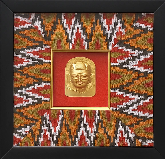 Design: Central sacred motif with ethnic textile border